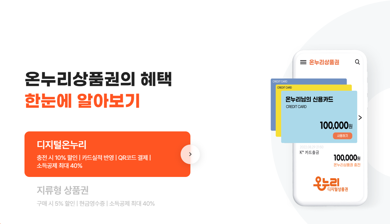 일부 card형 온누리상품권의 경우, 충전 시 10% 할인을 받으면서도 등록한 신용card나 체크card의 사용 실적에 그대로 반영되어 card사의 혜택(마일리지, 포인트 적립 등)을 동시에 누릴 수 있습니다.