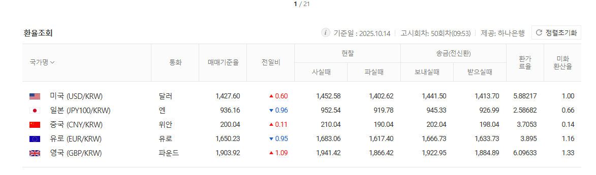 실제로 환전이 이루어지는 은행의 실시간 고시 환율을 직접 볼 수 있습니다. (예: KB국민은행 → 외환/환전 → 환율 조회)