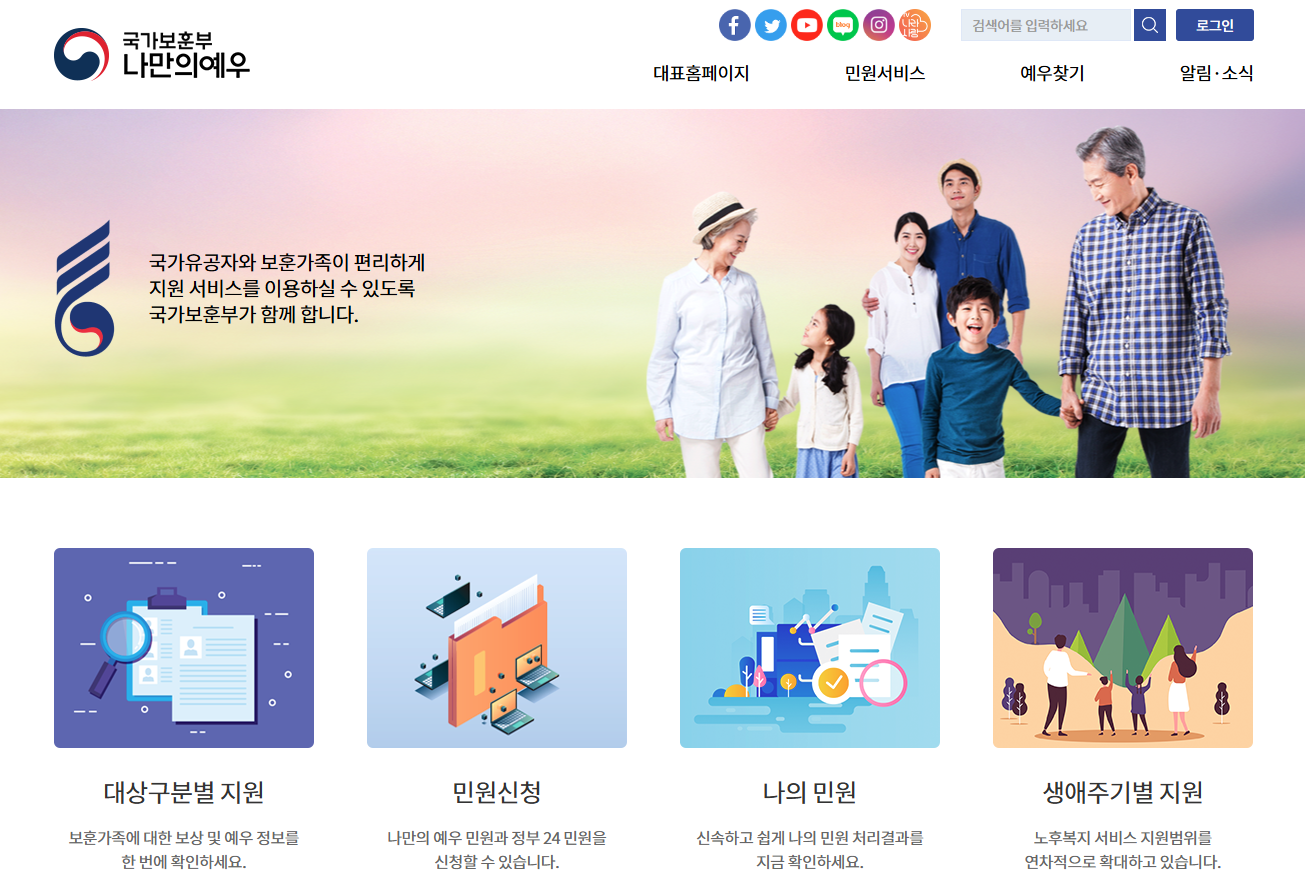 국가유공자와 보훈가족의 민원지원 및 예우찾기 서비스를 제공합니다.